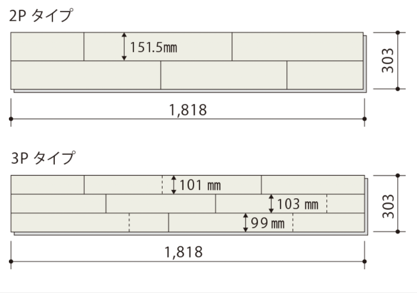 2Pは1つの板が2つに分かれている(溝1本)もので、3Pは1つの板が3つに分かれて(溝2本)います。